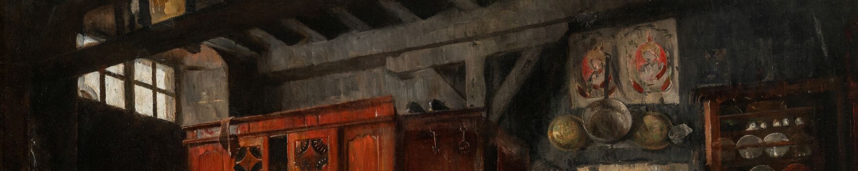 Large memorial exhibition at Kunstnernes hus in January of 1933 the year after Harriet Backer's death. With more than 100 paintings this is the largest ever exhibition of Harriet Backers pictures. It was also the first exhibition where a large number of her early works were exhibited and multiple paintings from her years of study in Christiania (Oslo) and Munch where shown for the first time. The exhibition also had a sceond part with 91 works by the painter Lars Jorde.